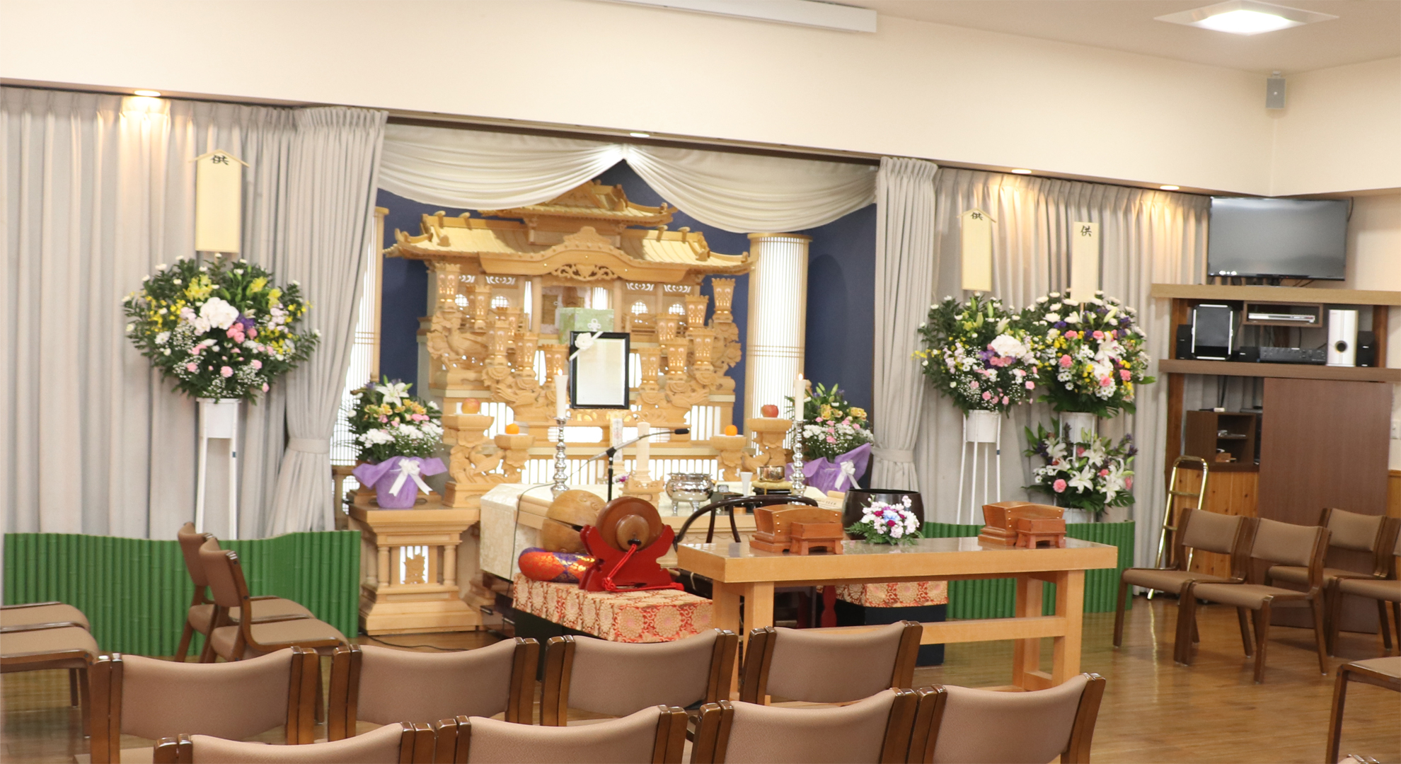 ホールは最大140名まで収容可能で、大規模な葬儀や社葬に対応しています。